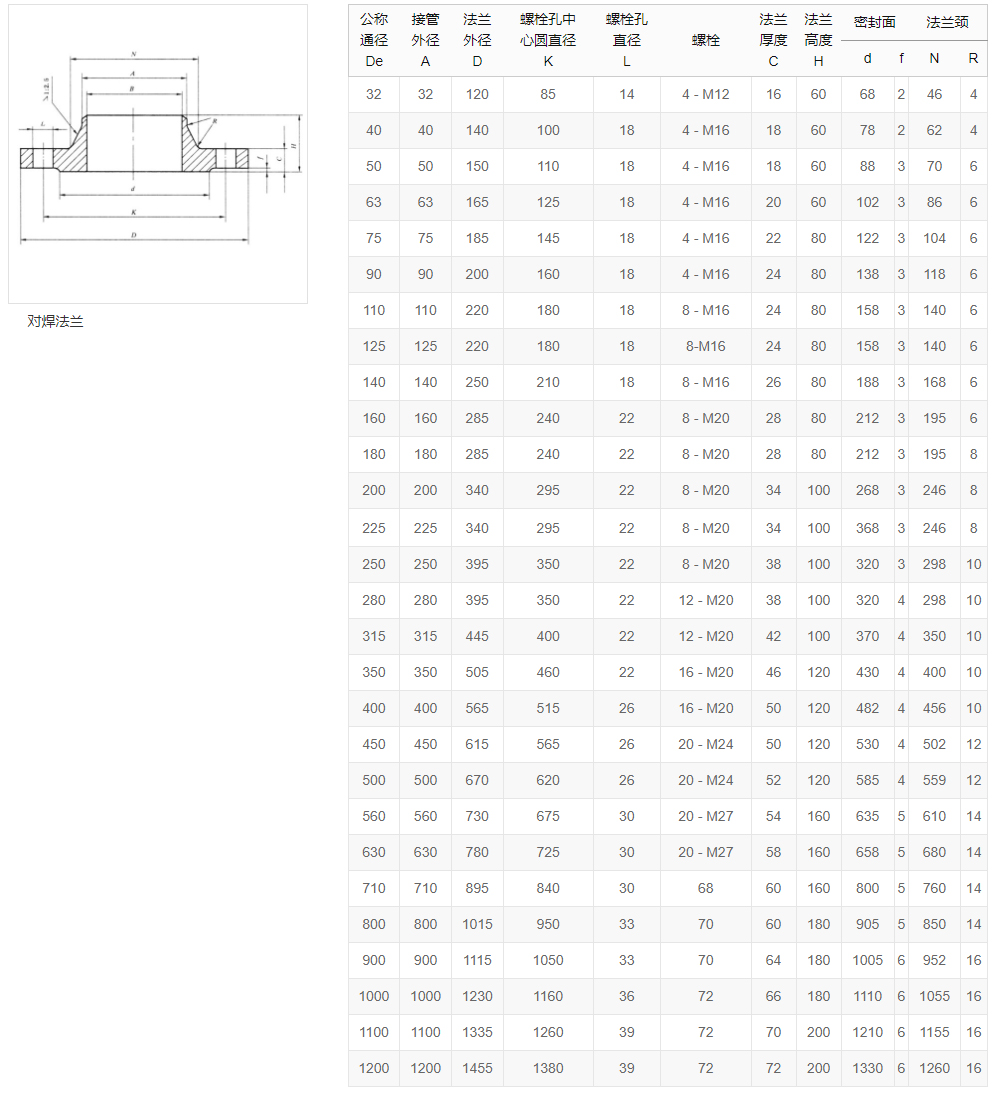 带颈对焊,单位:mm