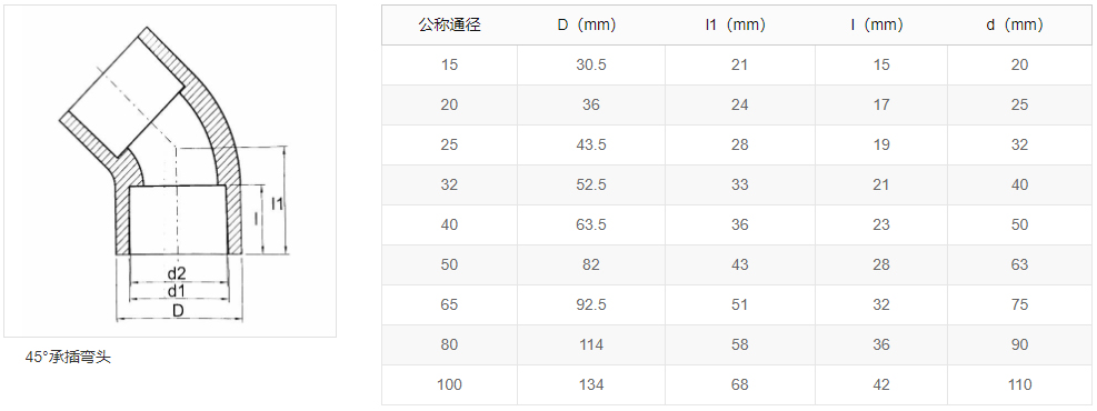 聚偏二氟乙烯(PVDF)45 ° 弯头,请根据施工工艺和现场实际施工状况合理选择连接配件