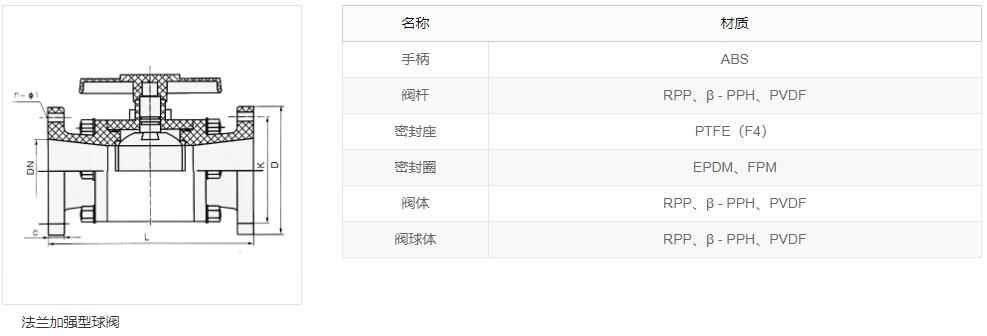 聚丙烯( PP ),玻璃纤维增强聚丙烯( FRPP ),均聚聚丙烯(PPH), 聚偏二氟乙烯(PVDF),聚氯乙烯(PVC - U)法兰式加强型球阀