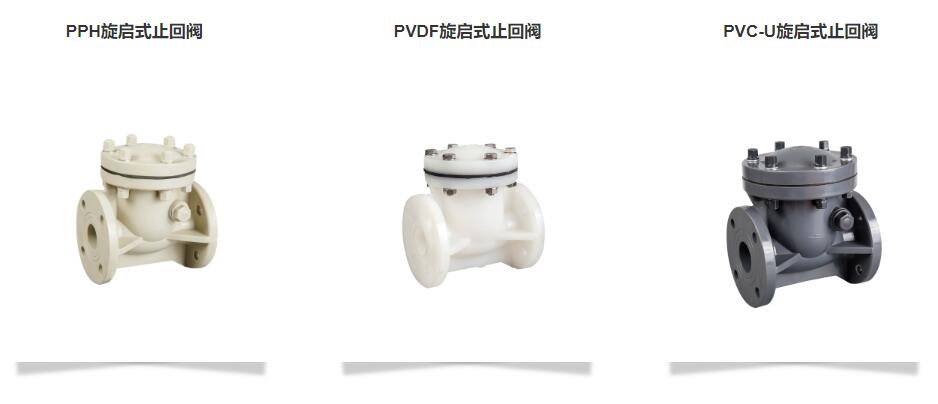 聚丙烯( PP ),玻璃纤维增强聚丙烯( FRPP ),均聚聚丙烯(PPH), 聚偏二氟乙烯(PVDF),聚氯乙烯(PVC - U)旋启式止回阀